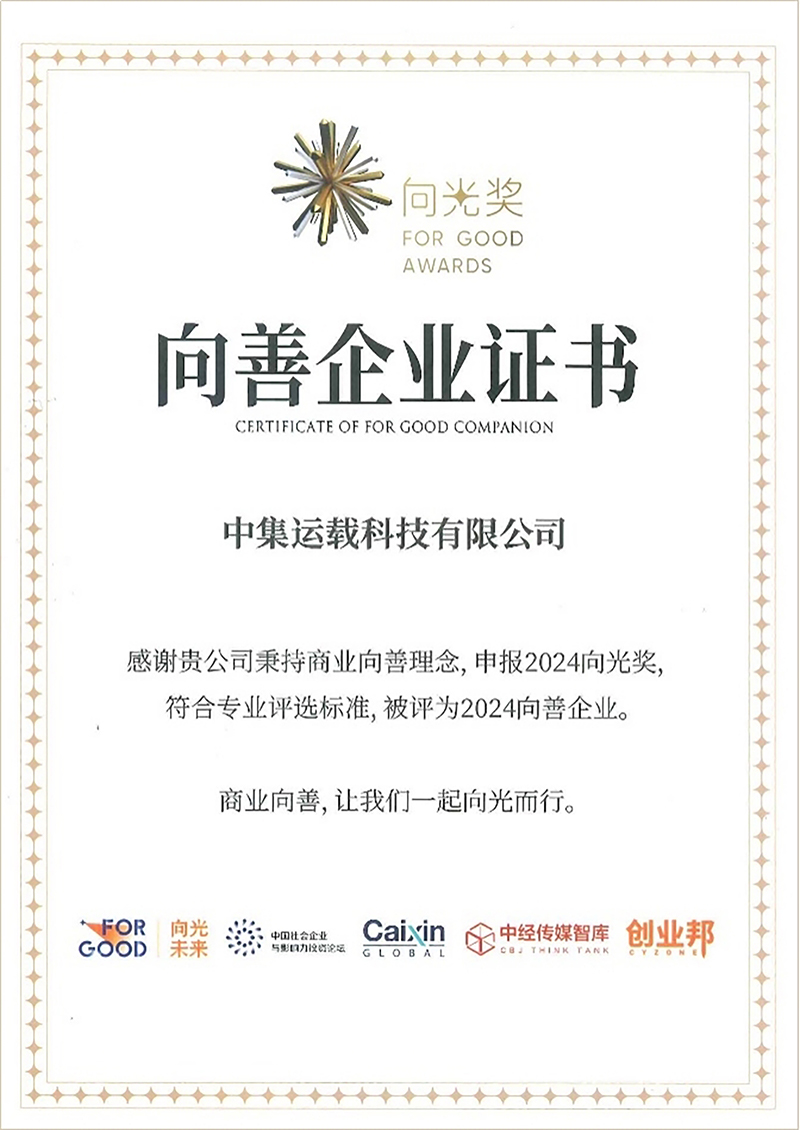 近日,中集运载科技有限公司(以下简称“中集载具”)传来振奋人心的消息,凭借其在可持续发展和社会责任领域杰出表现,成功入选2024年向光奖“向善企业”名录和年度商业向善Top 10入围企业。这一荣誉不仅是对中集载具长期以来坚持商业向善理念的认可,更是对我们不断追求技术创新、推动行业绿色发展的高度肯定。