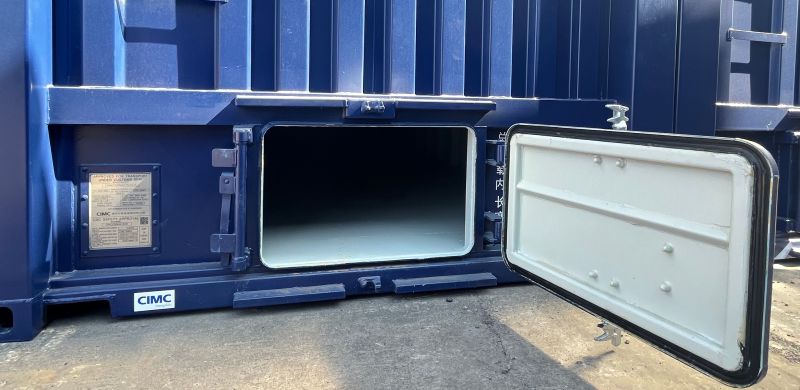 针对这一行业痛点,中集特装积极联动产业链核心伙伴协同攻关,成功推出新型干散箱。该产品全面升级密封结构,通过优化箱体结构,科学布设小卸货口,摒弃传统外露式胶条,采用一体式高密封性内胶条设计,从源头阻断泄漏路径。同时,箱门配备耐磨损特种密封件与精密锁闭系统,构建起全方位无缝密封防护体系,实现运输全程“零泄漏”。